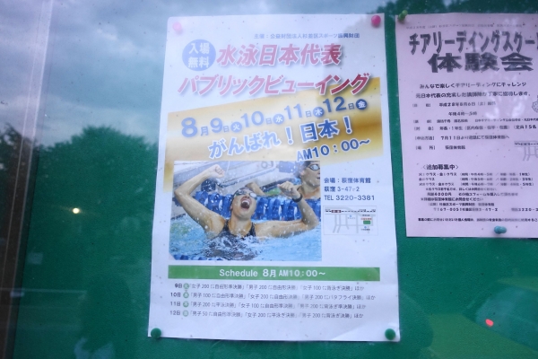 8月9日(火)~12日(金)の4日間、荻窪体育館にて、リオ五輪・水泳日本代表が挑む各種目のパブリックビューイングが開催!地球の反対側で金メダルを目指して、がんばれ!ニッポン! リオデジャネ...
