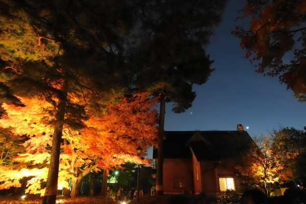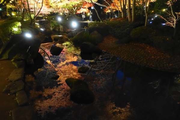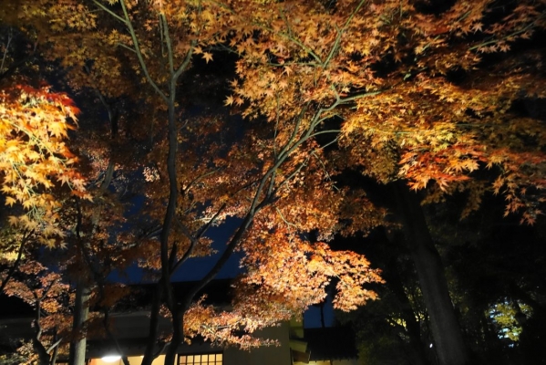 でお伝えした通り、現在、大田黒公園は日没後から、紅葉のライトアップが行われています。紅葉が光に照らされてとてもきれいでした。